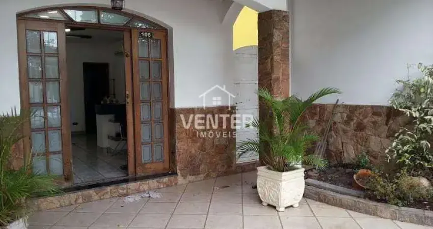Sobrado residencial localizado em avenida comercial. Excelente para vários tipos de comércio, tendo 4 vagas de garagem cobertas e com portão eletrônico. Cômodos amplos, sendo no térreo uma sala com WC e com acesso independente. Em outro acesso sala de estar, sala de jantar, lavabo, cozinha com armários planejados, escada em mármore para acesso à parte superior, onde possui WC social com gabinete e Box blindex, suíte máster com varanda, um closet e banheira de hidromassagem, dois outros quartos com armários. O imóvel possui um segundo pavimento com acesso por escada de madeira contemplando um salão de aproximadamente 80m todo em piso frio, com forro de madeira. E no quintal, edícula dois pavimentos, sendo a área de serviço, um quarto com WC, e na parte superior pia com churrasqueira e WC. - PONTOS FORTES: Casa em avenida comercial.