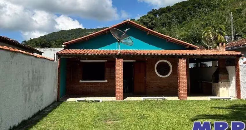 Casa com 3 dormitórios sendo um suíte em Ubatuba, cozinha com sala ampla e arejada, 1 banheiro completo social, varanda com churrasqueira, ducha, quintal espaçoso e gramado.