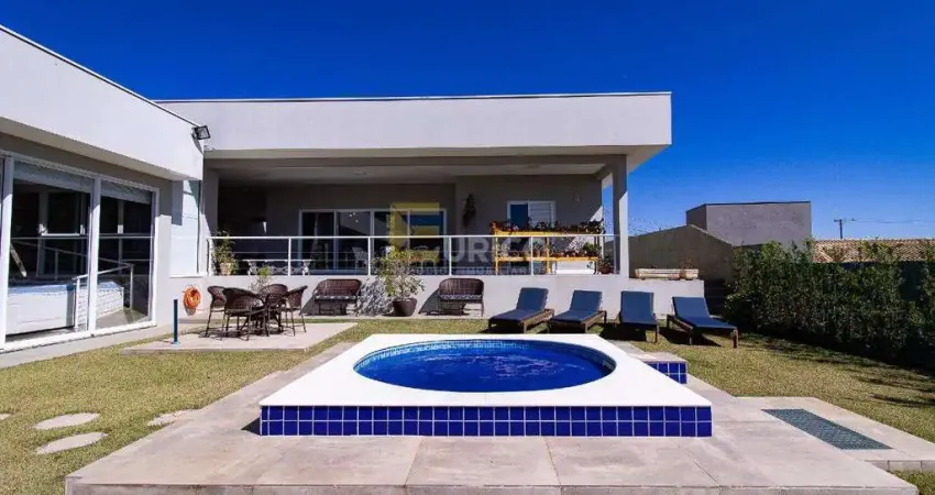 Casa moderna, térrea, construção nova, terreno medindo 1000m², construção 393m², contendo 3 suítes (uma máster), sala grande com cozinha americana, lavabo, área de serviço e garagem coberta para 04 carros. ÁREA GOURMET: espaço amplo com churrasqueira, forno a lenha com armários embutidos, banheiros completos, depósito grande, jacuzzi (hidro), pira de chão e árvores frutíferas.