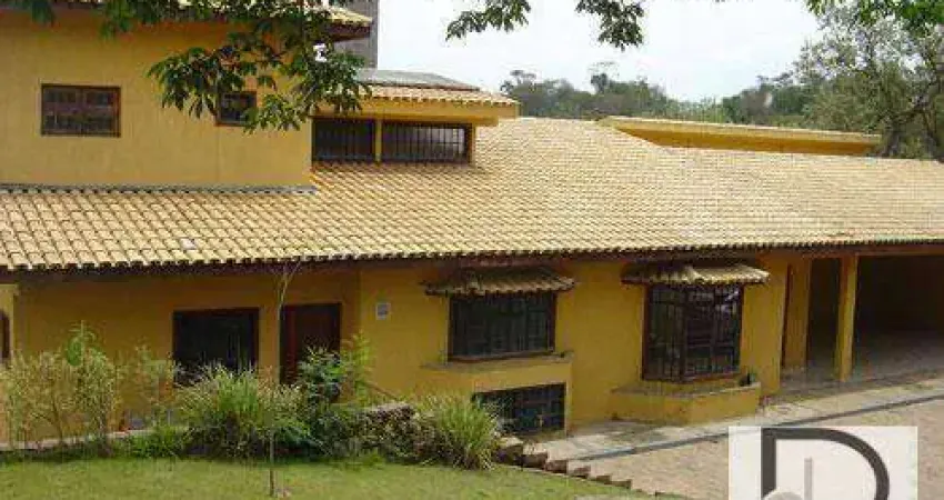 Casa à venda no bairro Mirante das Estrelas, em Vinhedo/SP. Casa cinematográfica no Mirante das Estrelas ao lado do Bosque Municipal com área verde nativa, vista espetacular, quadra de futebol/voley, quadra de tênis, deck, piscina com hidro, casa de caseiro, vestiário com 2 banheiros e depósito, depósito de ferramentas,quiosque com churrasqueira, aquecimento central solar e elétrico, Três quartos, sendo 03 suítes principais com hidro e vista para o por do sol, suíte master com lareira, varanda e ante-sala, sala principal com lareira e jardim de inverno, sala de jantar, sala de tv com lareira, escritório, quarto de hóspedes, salão com bar e mini cozinha, sauna seca e à vapor com vestiário, cozinha planejada, despensa, área de serviço interna, ampla acomodação de empregados, garagem para 07 carros, oficina, casa de caseiro com sala, quarto, cozinha e banheiro, torre de caixa d´água com 6500 litros, rua muito tranquila.