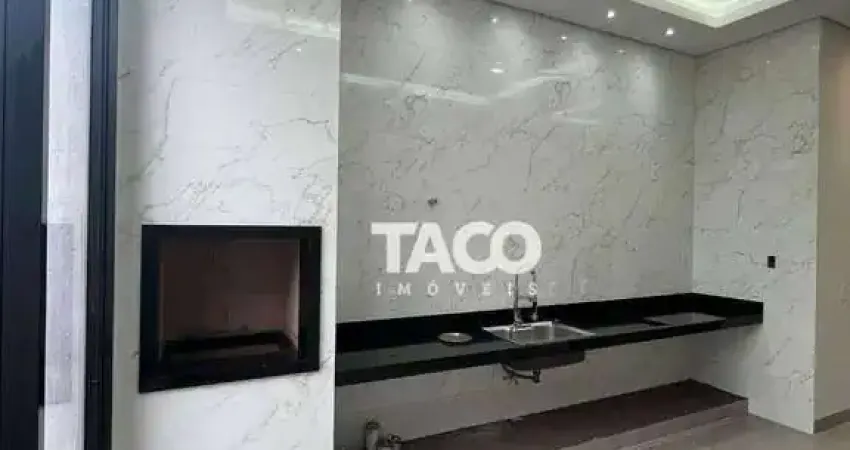 Área gourmet com churrasqueira revestida em porcelanato integrada com cozinha, ducha na área externa, sala em dois ambientes com pé direito alto e sanca dupla até a cozinha, 03 quartos sendo 01 suíte com closet, banheiro social, lavanderia com cuba inox e bancada de apoio, garagem para 02 carros, preparação para ar-condicionado em todos os quartos, preparação para água quente na cozinha e nos banheiros, esquadrias pretas em toda a casa, porcelanato Classe A e acabamento de alto padrão.