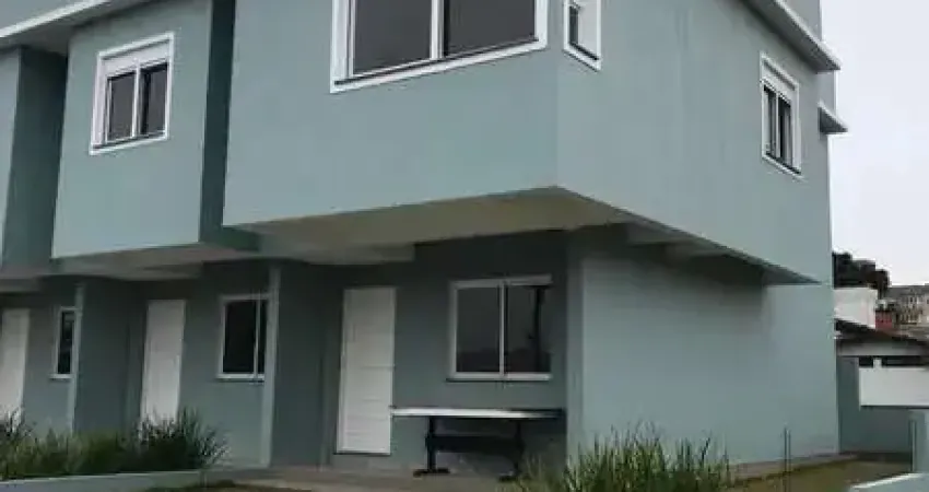 Duplex de esquina, três dormitórios sendo um deles suíte, sala e cozinha integrados, churrasqueira, lavabo, banheiro social, espera para água quente e vaga de garagem para carro, aproximadamente 90 m² de área construída.