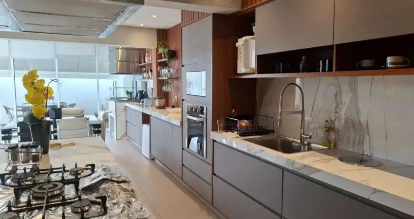 cozinha integrada com área gourmet;
