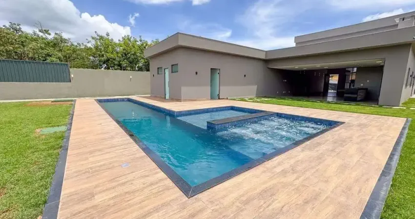 Procurando funcionalidade, conforto e espaço integrado? Esta é a sua chance! Uma casa térrea, zero quilômetro com design moderno e integração total. Perfeita para quem ama receber e viver bem. São 4 suítes, cozinha planejada, e uma área externa espetacular com cozinha gourmet e piscina aquecida para natação e pista de cooper privativa para caminhada. Segurança com monitoramento remoto e preparação para energia solar fotovoltaica.