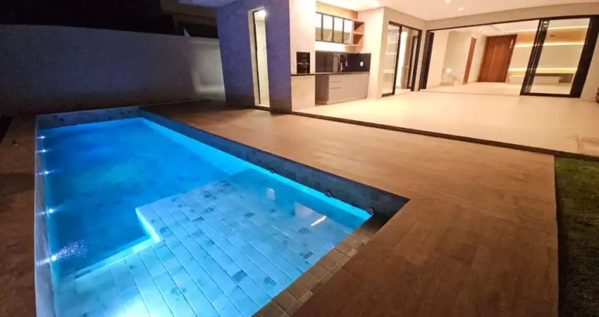 No pavimento térreo, sala ampla para 3 ambientes, cozinha, despensa, lavabo, área de serviço, varanda gourmet, piscina e banheiro de apoio.