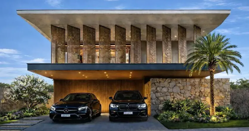 Sobrado implantado em lote nascente de 654 m², com integração total no pavimento térreo, lazer amplo e ambientes climatizados com sistema dutado. Entregue semi mobiliado com marcenaria completa Florense.