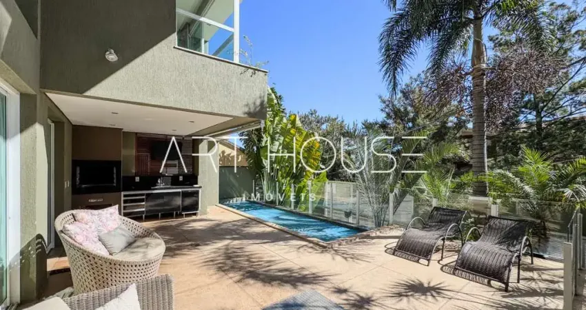 No 1° nível: piscina aquecida integrada à área gourmet , sala para 3 ambientes, cozinha espaçosa e montada, home office, despensa, lavanderia e DCE.