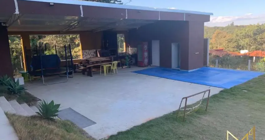 Área de lazer churrasqueira, fogao a lenha, sauna, piscina semi aquecida com cascata, dois lavabos e chuveiro.