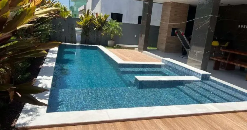 Casa com 04 suítes, sala estar/jantar, WC social, terraço, varanda, lavabo, cozinha, área de serviço, 04 vagas de garagem. Casa com 02 pavimentos, área gourmet, depósito, piscina com prainha e hidro, espaço para lounge, churrasqueira, todas as suítes com closet e varanda, suíte master com 70m², casa com 90% de móveis projetados, sistema de água quente, com vidro laminado, climatizada, com gesso decorado, já pronta para receber energia solar, casa com pinturas com tintas semi brilho da marca suvenil e coral - CRECI-1367-J.