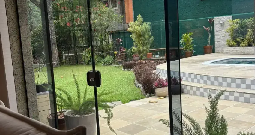 Imagine abrir a porta de casa e se deparar com um jardim gramado impecável, uma área de lazer acolhedora e o silêncio de uma rua tranquila, cercada pelo verde da serra.