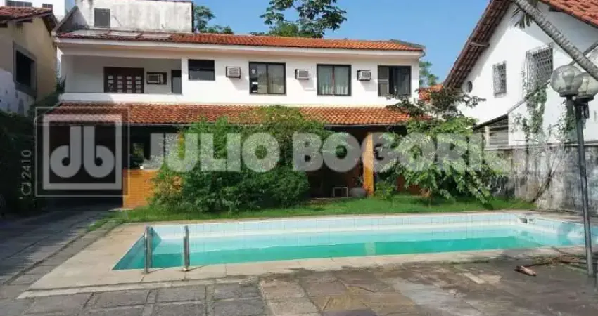 Casa duplex à venda na Freguesia de Jacarepaguá, com 4 quartos, sendo 1 suíte. O imóvel possui duas salas amplas com teto em madeira de lei, jardim de inverno, lavabo, escritório e copa-cozinha com armários. Conta ainda com área de serviço lateral e um varandão com acesso por portas de madeira, com vista para a piscina.