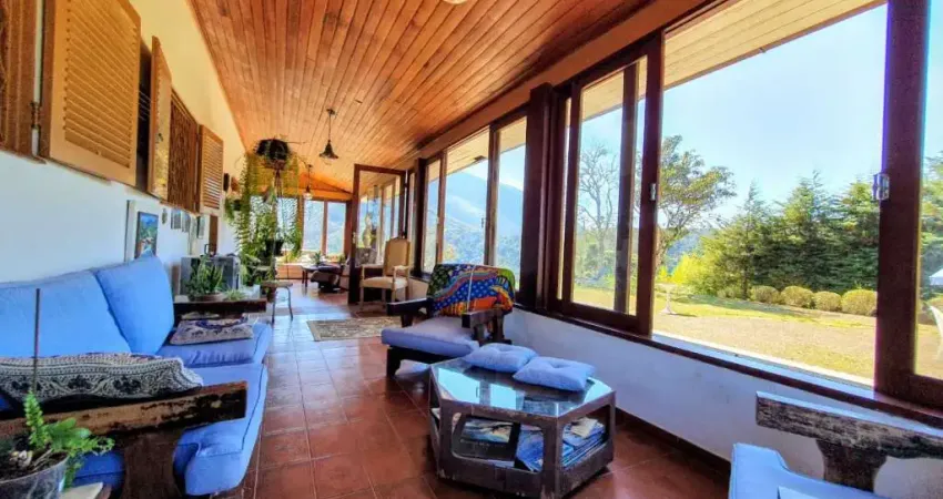 A propriedade é em estilo casa de campo, com terreno todo linear; composta por uma linda varanda de inverno com vista para o jardim, e para as montanhas que cercam o local; Sala de estar com lareira bem aconchegante; Ampla sala de Jantar; Um banheiro social; quarto espaçoso e arejado com armário embutido; Cozinha, com planejados, e ao lado, mais uma varanda de inverno, só que sendo utilizada como varanda gourmet.