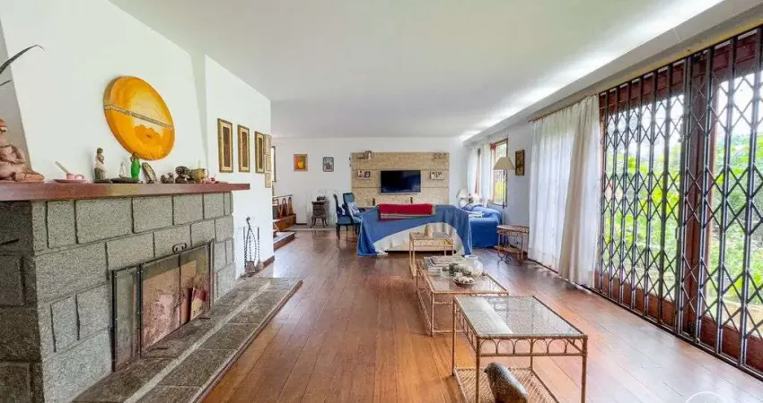 Descrevendo sobre o imóvel, temos um bom terreno de frente com a casa principal no meio, contemplando um lindo jardim e a natureza. Casa completamente linear disposta em sala com 2 ambientes lareira, cozinha, 4 quartos sendo 1 suíte, banheiro social, lavabo e dependência transformada em despensa.