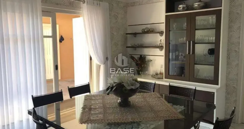 Casa mobiliada com 4 dormitórios, sendo 1 suíte, 4 banheiros, área de serviço, cozinha com armário, churrasqueira, closet, despensa, sala social, sala de TV, escritório, gás central, grades, lavabo, garagem com portão eletrônico.