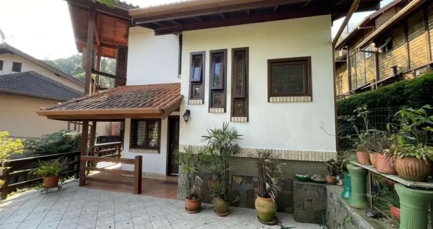 Em condomínio fechado com total segurança, no Centro de Gramado. Condomínio com ampla infraestrutura, segurança 24 horas e paisagismo preservado. Casa composta de 04 dormitórios (03 amplas suítes), churrasqueira, cozinha, calefação instalada, sala de jantar e sala de estar com uma bela varanda com vista para a rua e para a mata nativa, garagem para 2 carros.