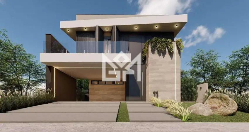 Com design moderno, acabamento impecável e uma localização privilegiada dentro de um dos melhores condomínios da região, esta casa de alto padrão é o imóvel dos sonhos para quem valoriza conforto, sofisticação e integração com a natureza. Em um terreno plano de 399m², a residência possui 242m² de área privativa, distribuídos em ambientes amplos e bem planejados, incluindo pé direito duplo, quatro suítes (sendo uma térrea), sala de estar, jantar, cozinha com ilha e área gourmet (link removido) para o lazer e a funcionalidade, a casa conta com piscina semi-pastilhada de 6x3 com aquecimento solar, lareira com visão externa, churrasqueira giratória automática com bifeteira, e um jardim completo com muros iluminados. A estrutura contempla ainda área de serviço, depósito, escada em granito, sete esperas para ar-condicionado, e garagem para até quatro carros. Todos os banheiros possuem box de vidro até o teto, enquanto os dormitórios contam com piso vinílico, gesso com cortineiros, e aberturas em alumínio automatizadas com tela mosqueteiro.O acabamento de alto padrão se reflete também nos detalhes: iluminação interna e externa completa, guarda-corpos em vidro, rodapés de 15cm e porta principal com fechadura eletrônica garantem estilo, segurança e praticidade. Com vista para área de preservação na frente e nos fundos, a casa está localizada na melhor rua do condomínio. Entrega prevista para julho de 2025 oportunidade única para quem deseja investir em um lar exclusivo e sofisticado.