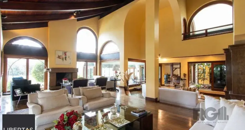 Excelente residência com aproximadamente 645,24m² privativos e 4 suítes com closet, sendo 1 suíte com hidromassagem e 1 suíte com banheira. Você pode contar também com um hall de entrada, lavabo, amplo living em 3 ambientes e com lareira, pé direito alto ente os pavimentos e com ótima iluminação natural, jardim de inverno integrado aos ambientes, espaço gourmet com churrasqueira e bar, sala de jantar, despensa, piscina térmica e coberta, sauna seca e úmida, área íntima no segundo pavimento com lareira e sacada, dependência de empregada completa, lavandderia, varanda, amplo jardim arborizado e com piscina também com aquecimento, casa de brinquedo para as crianças, além de 2 vagas de garagem cobertas e demais vagas descobertas. O imóvel possui também piso e esquadrias em madeira nobre, central telefônica, ar central, e aquecimento (link removido)ência localizada no bairro Tristeza, próxima ao Clube dos Jangadeiros, restaurantes e bistrô locais, farmácias, Shopping Paseo, Barra Shopping Sul, orla do Guaíba e ao comércio (link removido) sua visita! Estudamos seu imóvel no negócio. Além deste, mais de 25 mil opções em nosso site.