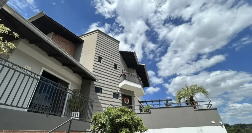 Belíssima casa de dois pavimentos, com excelente padrão de acabamento e uma vista encantadora. Localizada no bairro Salto do Norte, com fácil acesso à BR-470, em região tranquila e com ótimo padrão de vizinhança.