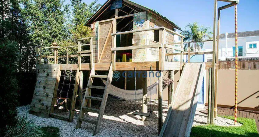 No lado externo, a área de lazer é um verdadeiro destaque, com uma piscina equipada com hidromassagem e iluminação interna, além de um gramado com casinha de brinquedo e parquinho para as crianças. O espaço é complementado por um jardim com iluminação externa, criando um ambiente acolhedor e elegante.