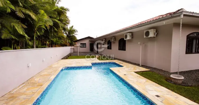 Casa à venda em Guaramirim com 4 quartos, suíte, piscina e área gourmet em terreno de 1.638m².