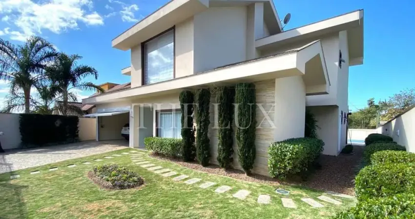 No piso térreo conta com uma sala de estar com lareira, escritório, sala de home, sala de jantar, cozinha, lavabo, área de serviço, área de churrasqueira e forno de pizza - tudo voltado para a área da piscina e quadra poliesportiva -, o que deixa o imóvel ainda mais interessante e confortável para receber seus convidados.