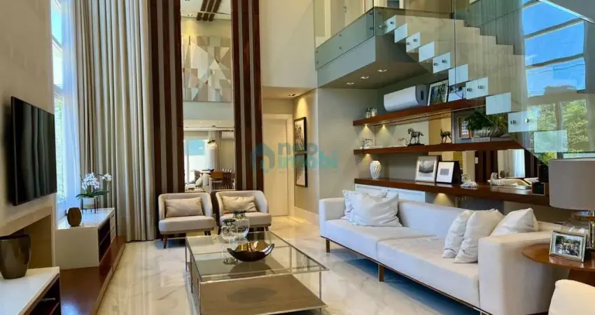Casa de alto padrão implantada em lote de 492,59 m², com 442,11 m² de área total construída, composta por 4 dormitórios, todos suítes, sendo a suíte master com closet e banheira de hidromassagem. Ambientes integrados de estar e jantar, cozinha funcional, escritório, mezanino para TV, ampla área gourmet equipada com sistema de som embutido, piscina aquecida, sótão espaçoso e garagem coberta para 3 veículos com home box amplo. Imóvel com sistema completo de monitoramento, acabamentos de primeira linha e soluções sustentáveis que garantem eficiência energética e conforto térmico.