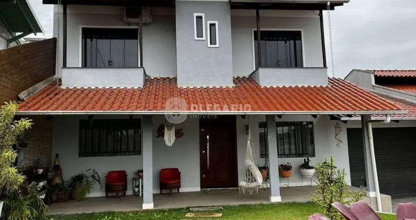 Ref. 1418 Sobrado averbado, com 199,94 m² de área construída, contendo no piso superior, 03 dormitórios com sacada, sendo 01 suíte, 01 banheiro social, 01 sala de tv, e no piso inferior, sala, cozinha, copa, sala, 01 banheiro social, lavanderia, despensa, área de festa com churrasqueira à carvão, 01 vaga de garagem coberta e 02 vagas descobertas, jardim na frente do imóvel.