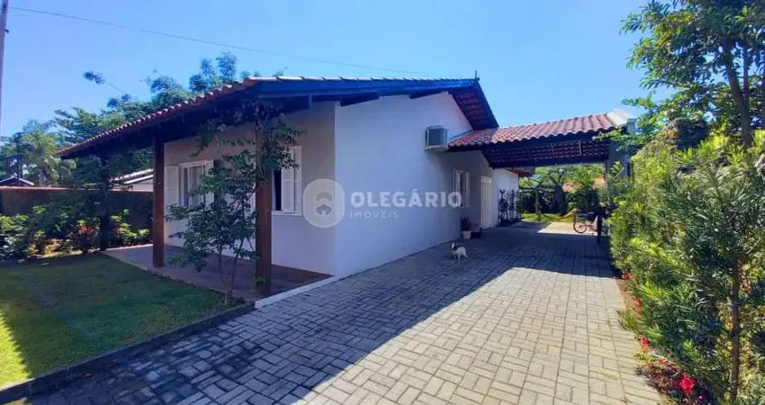 Casa averbada, com 160m² de área construída, contendo 04 dormitórios, sendo 01 suíte, 01 banheiro social, sala, copa e cozinha integradas, 01 lavado, lavanderia, 01 vaga de garagem coberta + 03 vagas descobertas, amplo quintal.
