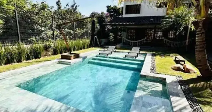 quintal, churrasqueira, solarium, piscina, cerca elétrica, portão eletrônico e vaga para 6 carros.