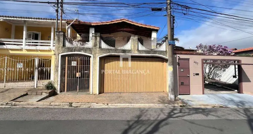 Casa ampla bem localizada em um dos melhores bairros de Bragança Paulista, com 2 vagas de garagem, sala de estar e jantar com varanda, sala de tv, ampla copa, cozinha, lavandeira, despensa, 4 dormitórios sendo 1 suíte e mais 1 banheiro social, área de luz no nivel superior, quintal com churrasqueira e edicula com banehiro e uma amplo escritório ou studio.