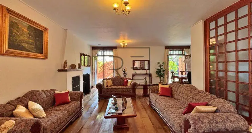 Salas amplas: estar com lareira, jantar, TV com pé-direito duplo e escritório com varanda.