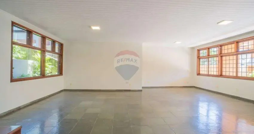 Com ambientes generosos e bem definidos, a residência preserva o estilo clássico da década de 80, evidenciado pelo uso de tijolos à vista e pelas janelas amplas, que favorecem a entrada de luz natural ao longo do dia. O projeto arquitetônico prioriza a integração entre os espaços, proporcionando uma circulação funcional e confortável. A sala principal, com cerca de 100 m², se destaca como um dos grandes diferenciais do imóvel, oferecendo múltiplas possibilidades de layout e adaptação. Essa característica torna a casa não apenas ideal para moradia, mas também extremamente interessante para quem busca um imóvel com potencial para uso comercial, como clínicas, consultórios, salões de beleza, escritórios ou espaços de atendimento, sem abrir mão da elegância e do conforto. A presença da lareira reforça a atmosfera acolhedora, enquanto a área externa com piscina e churrasqueira amplia as possibilidades de uso e convivência.