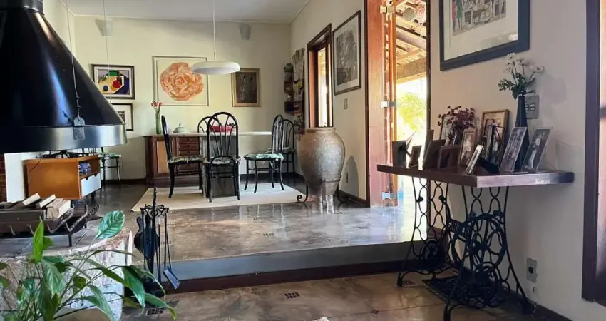 A casa sede, com amplas salas de estar; jantar, TV e de inverno com lareira. Pé direito alto e muita luz natural