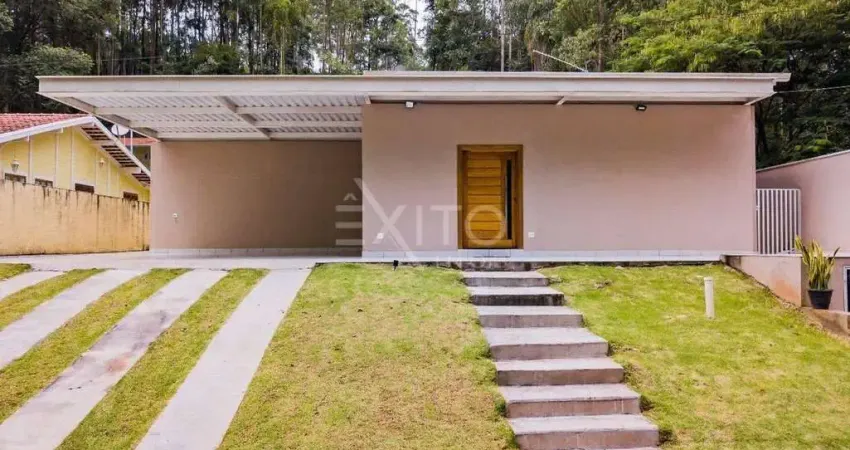 Casa térrea com 361m2 de construção num terreno de 1.215m2 rodeado de muito verde e em contato com a (link removido)óvel possui 04 suítes sendo uma na edícula anexa. Todas com banheiros equipados com chuveiro a gás.Sala ampla com 120 m², integrando salas de estar, jantar, lavabo, cozinha com móveis planejados e (link removido) e quarto de despejo.Área gourmet com churrasqueira, forno a lenha e fogão.Gerador de energia a gasolina para manter a casa inteira funcionando em casa de falta de (link removido) coberta para 2 automó(link removido) quintal com espaço para piscina e platô com aproximadamente 100 m².