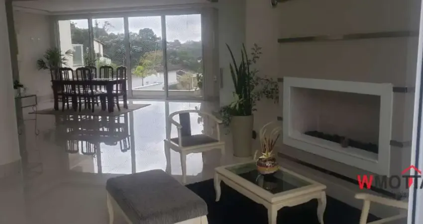 04 suítes (sendo 01 master com closet e hidromassagem dupla com cromoterapia e vista panorâmica), 03 cozinhas (sendo 01 espaço gourmet com caixas de som embutidas), adega, lavabo, escritório, sala de jantar, sala de TV, hall, sala de estar, lareira a gás, 06 banheiros, 02 despensas, área de serviço e 06 vagas de garagem (sendo 04 descobertas).