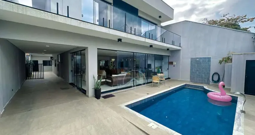 Com piscina - Garagens: 4 - Banheiros: 6 - Edícula: Sim - Churrasqueira: Sim - Área Total: 360,00 m² - Área Construída: 335,10 m² - 1 lote, Ar Condicionado, Área de Serviço, Área gourmet, Box Blindex nos banheiros, Box nos banheiros, Calçamento, Churrasqueira, Conceito aberto, Cozinha, Cozinha em conceito aberto, Edícula (2 suítes), Esquadrias Alumínio, Fino acabamento, Iluminação na piscina, Iluminação pública, Imóvel Novo, Piscina, Piscina com hidro, Piso porcelanato, Rede de esgoto, Sala p/ 3 ambiente, Suíte com Closet, Suíte com Hidro, Suíte Master, Varanda, Varanda Gourmet