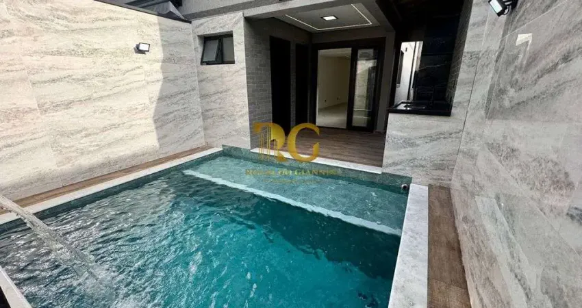 Piscina no térreo com churrasqueira a carvão integrada