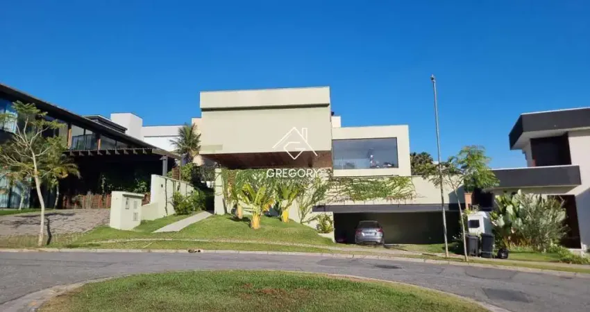 Casa em final de rua. Casa nova, moderna com 4 suítes sendo 1 suíte térrea e 3 suítes no pavimento superior, com área construída de 500m2 sendo 25,80m2 de área de lazer (incluindo piscina). Área de terreno 574,68m2 sendo 17m2 de frente, em curva com raio de 14m2 e 25m de fundos, lateral direita de 33 m e esquerda de 27 m2. A casa será entregue totalmente mobiliada incluindo eletroeletrônicos, suítes com estrutura de ar-condicionado, sendo 2 já com a instalação do ar realizadas. Escritório no primeiro pavimento, sala com pé direito duplo integrada com a área de lazer e cozinha estilo americana. Todos os cômodos possuem grande incidência de iluminação natural e sensação de amplitude. Condomínio com área de lazer completa, quadra poliesportiva, piscinas descobertas e aquecidas, quadra de futebol, quadra de tênis, academia. Garagem para 6 carros. Casa nova, moderna com 4 suítes sendo 1 suíte térrea e 3 suítes no pavimento superior, com área construída de 500m2 sendo 25,80m2 de área de lazer (incluindo piscina).