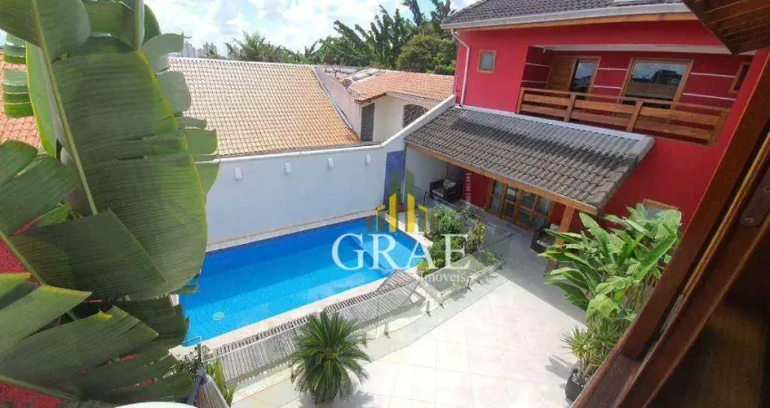 Belíssimo Sobrado de 510m², com 4 dormitórios (3 suítes). 6 vagas de garagem, Churrasqueira e forno de pizza com ampla área gourmet, piscina aquecida, Garagem bar, rico em móveis planejados e excelente acabamento. Localizado em um bairro de alto padrão com vigilância 24h.