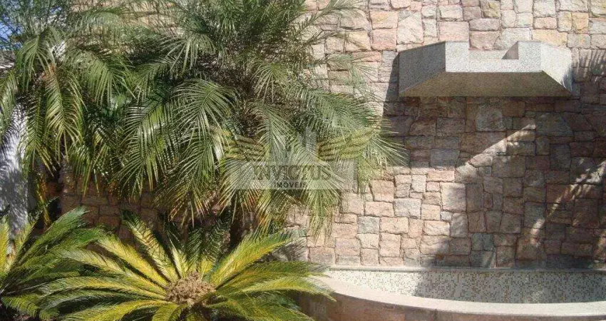 GERAL 1. Caixilharia em alumínio; 2. Portas em madeira cor marfim; 3. Automação em toda a caixilharia; 4. Ar condicionado quente e frio; 5. Aquecimento solar com apoio a aquecimento a gás na casa; 6. Piscina com aquecimento a gás e tratamento automatizado; SUBSOLO 1. Garagem coberta para 5 vagas; 2. Acesso à entrada de serviço; 3. Dormitório de empregada; 4. Banho serviço; 5. Depósito; 6. Canil; 7. Acesso ao pav. térreo. PAV. TÉRREOAcesso social 1 - área interna; 2. Hall interno com pé direito duplo; 3. Escada de acesso ao pav. superior com jardim; 4. Escritório; 5. Living com lareira; 6. Home theater; 7. Living; 8. Bar; 9. Varanda; 10. Sala de Jantar; 11. Lavabo; 12. Cozinha e copa; 13. Área de Serviço; 14. Área de secagem; 15. Despensa; 16. Jardim com Espelho dágua e cascata; 17. Vestiário feminino e vestiário masculino; 18. Depósito e casa de máquinas da piscina; 19. Acesso social 2 área de lazer; 20. Acesso interno a área de lazer. PAV. SUPERIOR 1. Suíte máster: a. Dormitório; b. Closet; c. Banheiro; d. Sauna com área de descanso; e. Banheira; f. Sacada. 2. Suíte 1 com banheira e sacada; 3. Suíte 2 com banheira e sacada;4. Suíte 3 com banheira e sacada; 5. Sala íntima com terraço; 6. Roupeiro; 7. Área de lazer: a. Piscina aquecida com espelho dágua; b. Deck; c. Salão coberto para jogos; d. Área de churrasqueira; e. Lavabo; f. Jardim. REVESTIMENTOS 1. Piso área externa (inclusive deck da piscina) em porcelanato Italiano; 2. Piso área social interna em porcelanato e granito; 3. Piso área de serviço interna em granito; 4. Piso dormitórios em assoalho de madeira; 5. Piso sala íntima em porcelanato; 6. Piso área de lazer interna em porcelanato; 7. Piscina em (link removido) já um de nossos especialistas e agende sua visita!Invictus Imóveis (011) WhatsApp