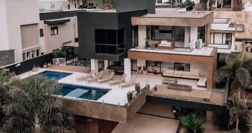 A casa conta com 3 pavimentos, garagem no subsolo. No Piso térreo tem uma sala de estar com pé direito duplo e uma sala de jantar, Home Theather e Brinquedoteca, lareira interna, escritório, área de serviço ampla, cozinha completa equipada integrada com uma excelente área gourmet climatizada com ar condicionado Cassete, 1 suíte, e uma piscina espaçosa para toda família, lareira externa contemplando o visual do por do sol.