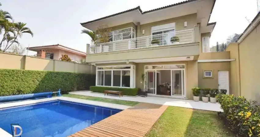Com 546m² de terreno e 500m² de área de construção, esta casa conta com 4 dormitórios, sendo 2 suítes, um escritório, piscina e 4 vagas de garagem. No piso superior, os dormitórios possuem ar condicionado, banheiros com acabamento em mármore e uma suíte com closet e banheira de casal.