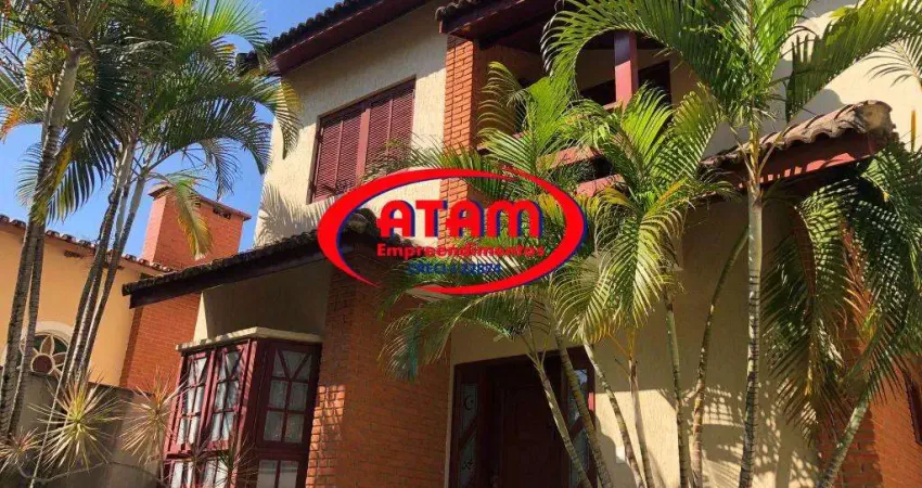 Residncia com arquitetura diferenciada, com vários ambientes em pequenos desníveis, contendo 4 suítes, sendo uma master com closet e outras duas em estilo americano com varandas, 3 salas, 2 ambientes sociais com lareiras (em um deles ampla sacada com linda vista verde), sótão, 2 lavabos, 2 cozinhas, dependncias completas de serviço mais duas lavanderias e porão. Agradável e ampla área de lazer com piscina, churrasqueira e espaço verde. Garagem coberta para 5 veículos mais 3 vagas descobertas. Proprietários avaliam permuta por apartamentos de padrão na zona norte com varanda gourmet. Visitas somente com agendamento prévio. Ligue (11) e - WhatsApp (11) 9 .