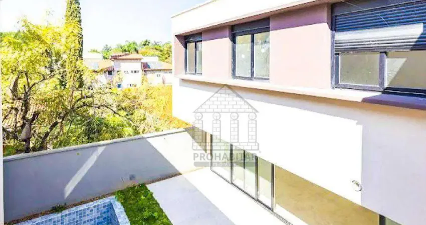 O imóvel possui 4 dormitórios, todos suítes, piscina privativa e 4 vagas de garagem cobertas, em um condomínio com apenas 8 casas.