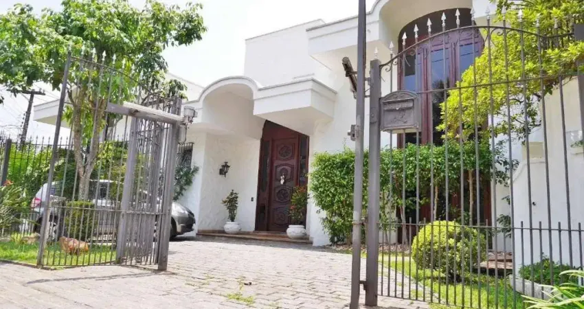 794 m2 AMBIENTES: 1 suíte-master com closet amplo, terraço. Banheiro da suíte com 2 cubas na pia, box e banheira 3 dormitórios, servidos por 2 banheiros no corredor Todos os quartos possuem armários embutidos 1 copa que serve todos dormitórios 1 sala de jantar 1 sala de almoço 4 salas de estar, sendo uma delas com lareira 1 ambiente externo coberto, anexo à piscina 1 lavabo social 1 salão subterrâneo amplo, constituído por 3 ambientes separados Cozinha ampla com forno embutido na parede, fogão central e despensa Piscina com 1 banheiro (com chuveiro), jardim e bancada com torneira. 7 vagas de garagem, sendo 4 cobertas e 3 descobertas Áreas de serviço interna e externa (quintal de serviço) 3 dormitórios e 2 banheiros para funcionários 1 depósito Casa de esquina com 2 entradas, sendo uma social e outra de serviço: ?