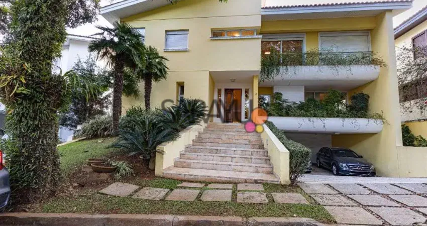 Localizado em um condominio tranquilo e arborizado, este imovel oferece seguranca 24 horas. Com casas de fachadas individualizadas e amplo espaco entre elas, possui um charmoso hall de entrada com lavabo, um espacoso escritorio com lareira, sala de jantar, sala de almoco, cozinha com despensa, alem de um living integrado com a varanda, proporcionando uma vista deslumbrante para o amplo jardim e piscina.