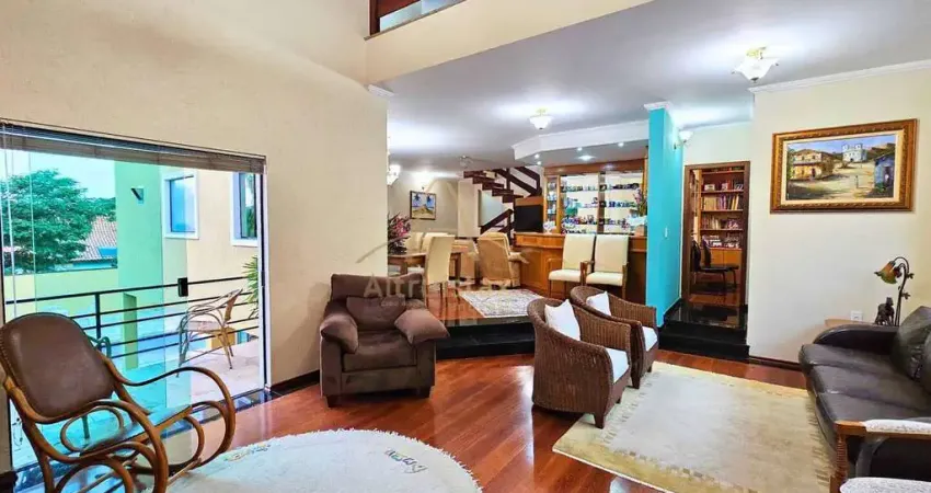 No piso superior são 4 dormitórios amplos, todos com armários de ótima qualidade, sendo 2 suítes com sacada, a master com closet, e ainda conta com uma sala íntima espaçosa com lareira. Os banheiros das súites com armários, espelho e box, além de banheiro social.