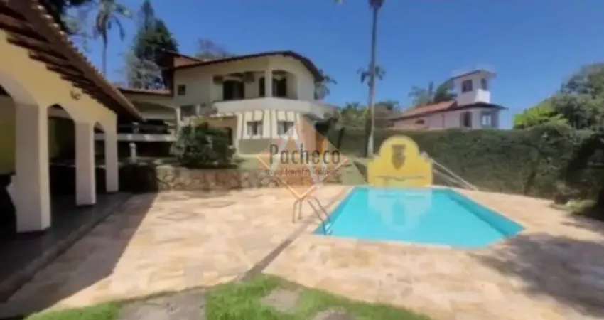 Sobrado com 4 dormitórios sendo 2 suítes (1 máster com closet, jardim de inverno e varanda), 1 banheiro social, 4 salas (sala de jantar, sala com lareira, sala de TV), lavabo luxuoso, cozinha com armários, área de serviço grande, dependência de empregado (dormitório e banheiro), área de lazer com piscina de 35.000L com cascata, churrasqueira, banheiro, salão para ginastica, LOFT para hospedes com 40m², jardim e 8 vagas de garagem.