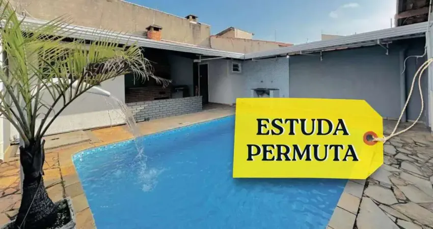 Casa térrea, 4 quartos com piscina à Venda no Jardim Piazza di Roma I – Sorocaba/SPEstuda permuta por apartamento até 200 mil 4 dormitórios 2 banheiros 3 vagas de garagem cobertas Sala de estar, TV e jantar integradas, criando um espaço aconchegante e funcional Cozinha planejada com armários embutidos Lavanderia independenteÁrea Externa e Lazer Amplo quintal, ideal para momentos de convivência Área gourmet completa com churrasqueira e fogão a lenha Piscina com cascata, perfeita para relaxar nos dias ensolarados Banheiro de apoio externo Quarto de despejo para armazenamento