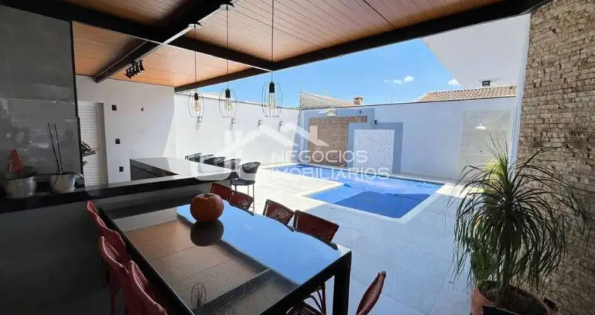 Ampla casa sobrado com: 4 dormitórios (sendo duas suítes), sala de estar, sala de jantar, cozinha, banheiro social, área com churrasqueira, piscina, jardim